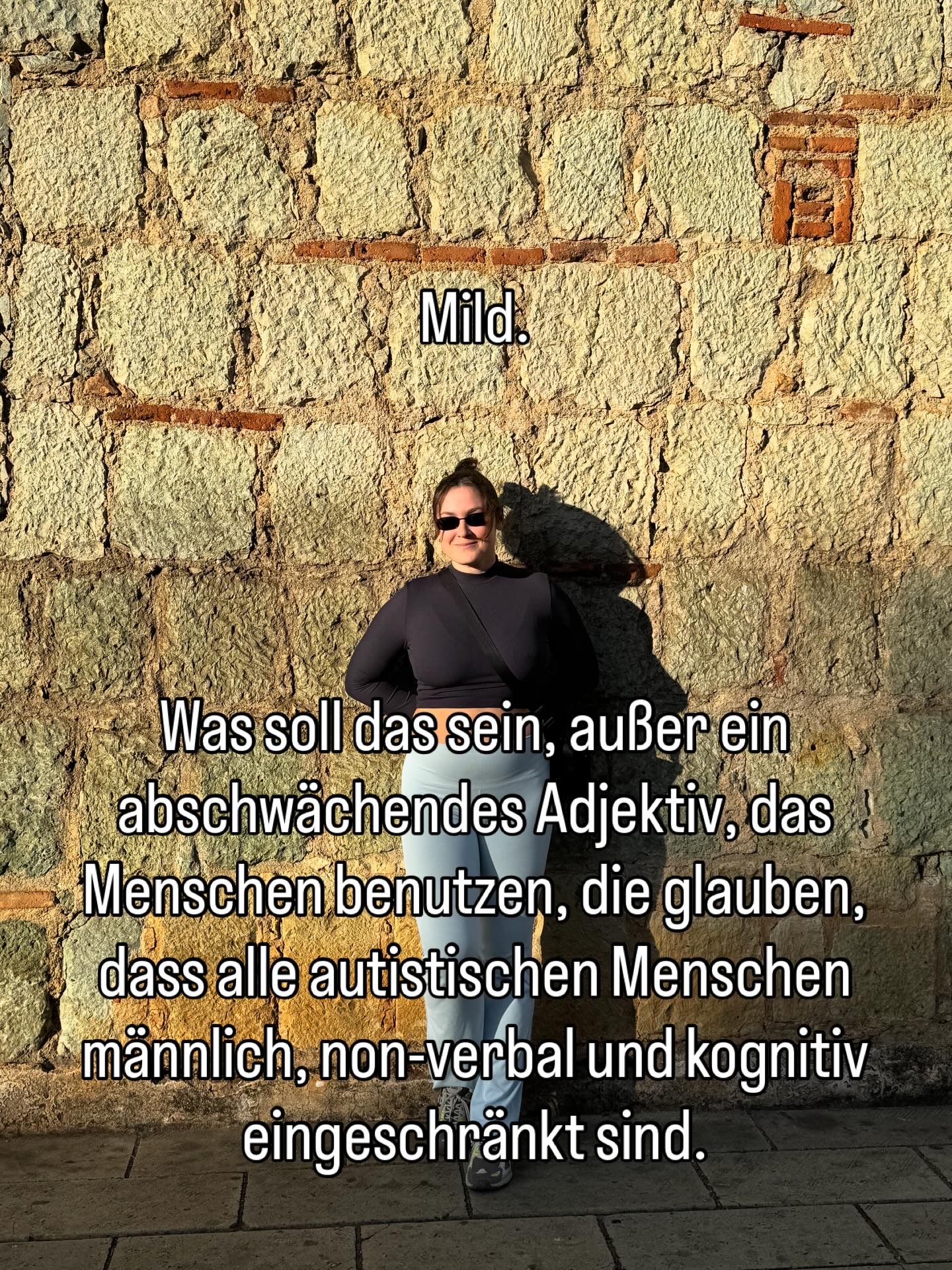„Mild“ funktioniert wie ein Beruhigungswort, das nicht die betroffene Person beruhigt, sondern das Umfeld. Es signalisiert: „Hier besteht von eurer Seite kein Anpassungsbedarf! Diese Person ist nicht autistisch genug, um Support zu benötigen!“ Dabei hätte ich den durchaus nötig gehabt.