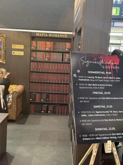 Ein paar Meter weiter lande ich bei einem „Darker Dark Romance“-Stand. Frei nach dem Motto: Schlimmer geht immer. Auch hier wieder: Jede Menge mäusiger Mädchen mit langen, glatten, ungefärbten Haaren. Sie sind keine 15 Jahre alt, und ziehen leicht beschämt Bücher aus einem Regal mit der Überschrift „Mafia Romance“ heraus.